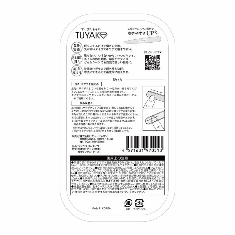 つやこ スリムタイプ すっぴんネイル TUYAKO つやこ ガラス製 爪やすり